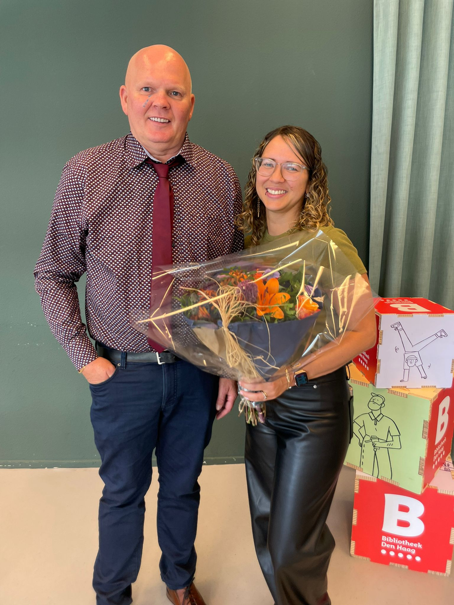Tijdens de Week van Lezen en Schrijven werd gisteren het Taalhuis in de Centrale Bibliotheek Den Haag even het middelpunt van een feestelijk en bijzonder moment. Dichter en taalambassadeur Michel Antonisse onthulde daar zijn eigen gedicht, dat vanaf die dag permanent in het Taalhuis te bewonderen is. Daarnaast ontving Ryanne Kelly de Doe Weer Mee! Pluim Den Haag 2025. Kelly spant zich namens het Taalhuis in voor de wijkgerichte taalaanpak en ontvangt de Pluim voor haar grote inzet om zoveel mogelijk inwoners te helpen om mee te doen in de samenleving. Van moeite met taal naar dichter Geboren Hagenaar Michel Antonisse leerde zichzelf dichten, maar twijfelde over spelling en grammatica. Daarom schreef hij zich in bij de taalles voor Nederlandstaligen (NT1) van de Taal+ school van ROC Mondriaan. Wat begon als een zoektocht naar zekerheid, groeide uit tot een passie én een missie. Inmiddels is hij taalambassadeur, behaalde hij zijn mbo-diploma en publiceert hij zijn eigen gedichten. Het Taalhuis is onder de indruk hiervan en ziet Michel als een voorbeeld voor anderen. Michel: “Het is een enorme eer dat mijn gedicht in het Taalhuis komt te hangen. Ik hoop dat het anderen inspireert om óók stappen te zetten. Goed leren lezen en schrijven is zo belangrijk om echt mee te kunnen doen.” |